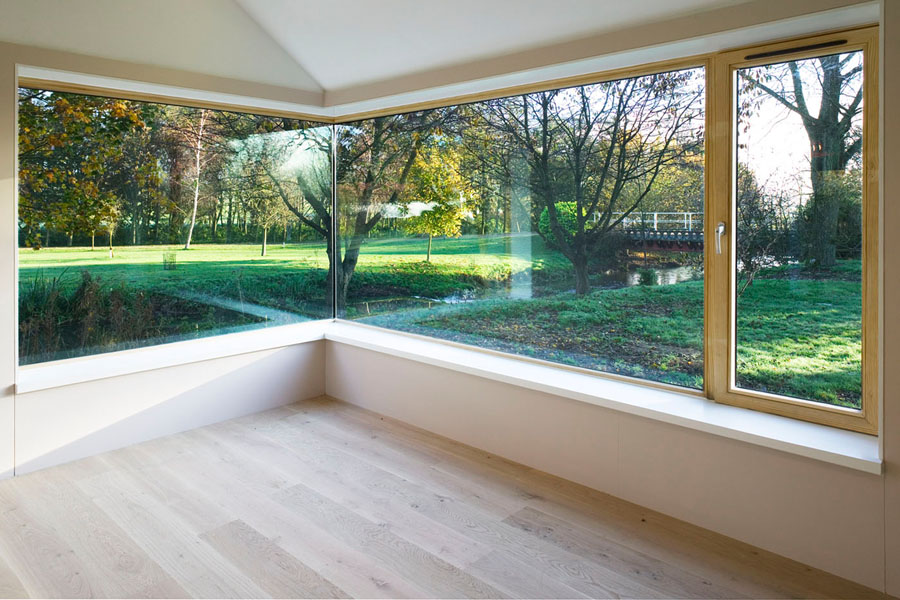 which frames views onto the river from the living room and an 8m line of glazed doors which fold in