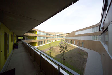 into a basket. It contains 79 rental apartments and 14 service apartments for young handicapped people.